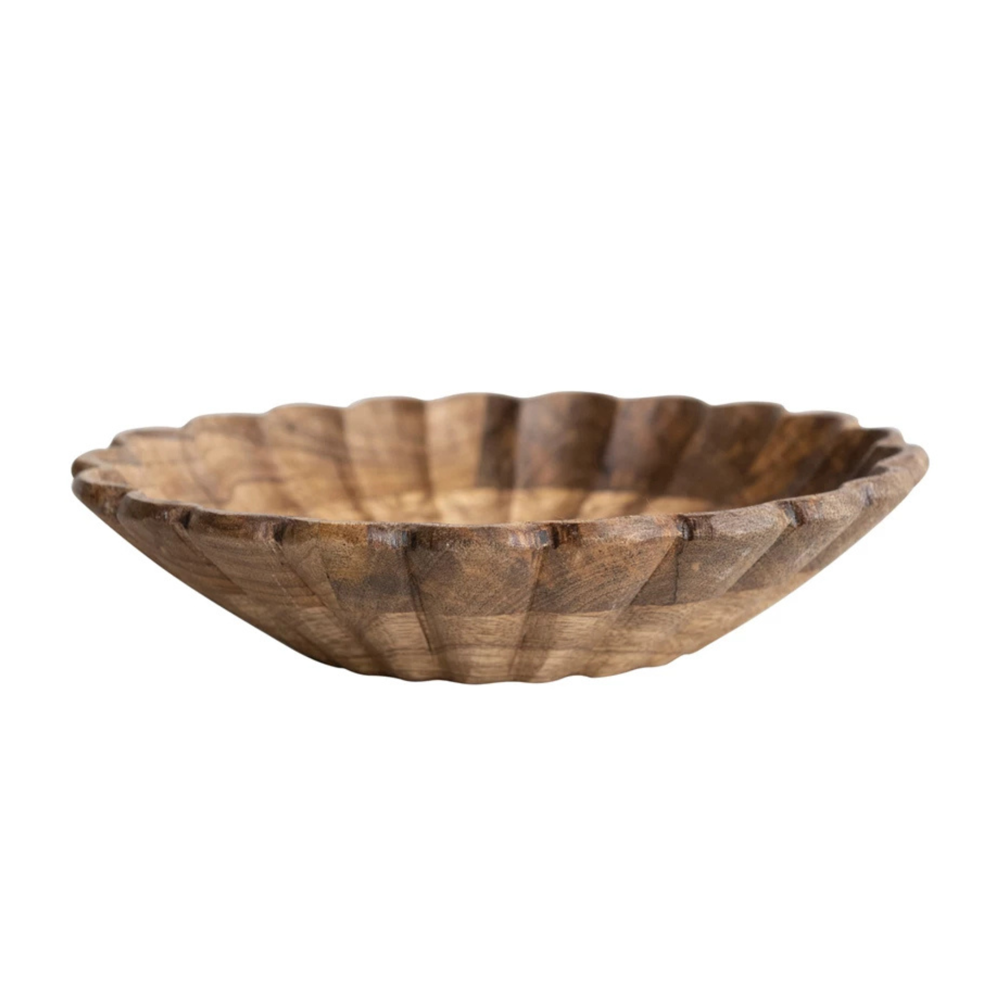 Crafted from sustainably sourced mango wood, this Scandinavian-influenced serving bowl features a distinctive fluted design with elegantly scalloped edges. Food-safe and built to last, it combines functional artistry with understated Nordic aesthetics. Hand wash recommended to preserve its natural finish and structural integrity.