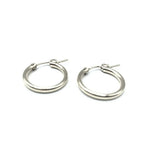Sterling silver huggie hoops with a secure lock clasp. Lightweight 18mm design balances presence with comfort for everyday wear.