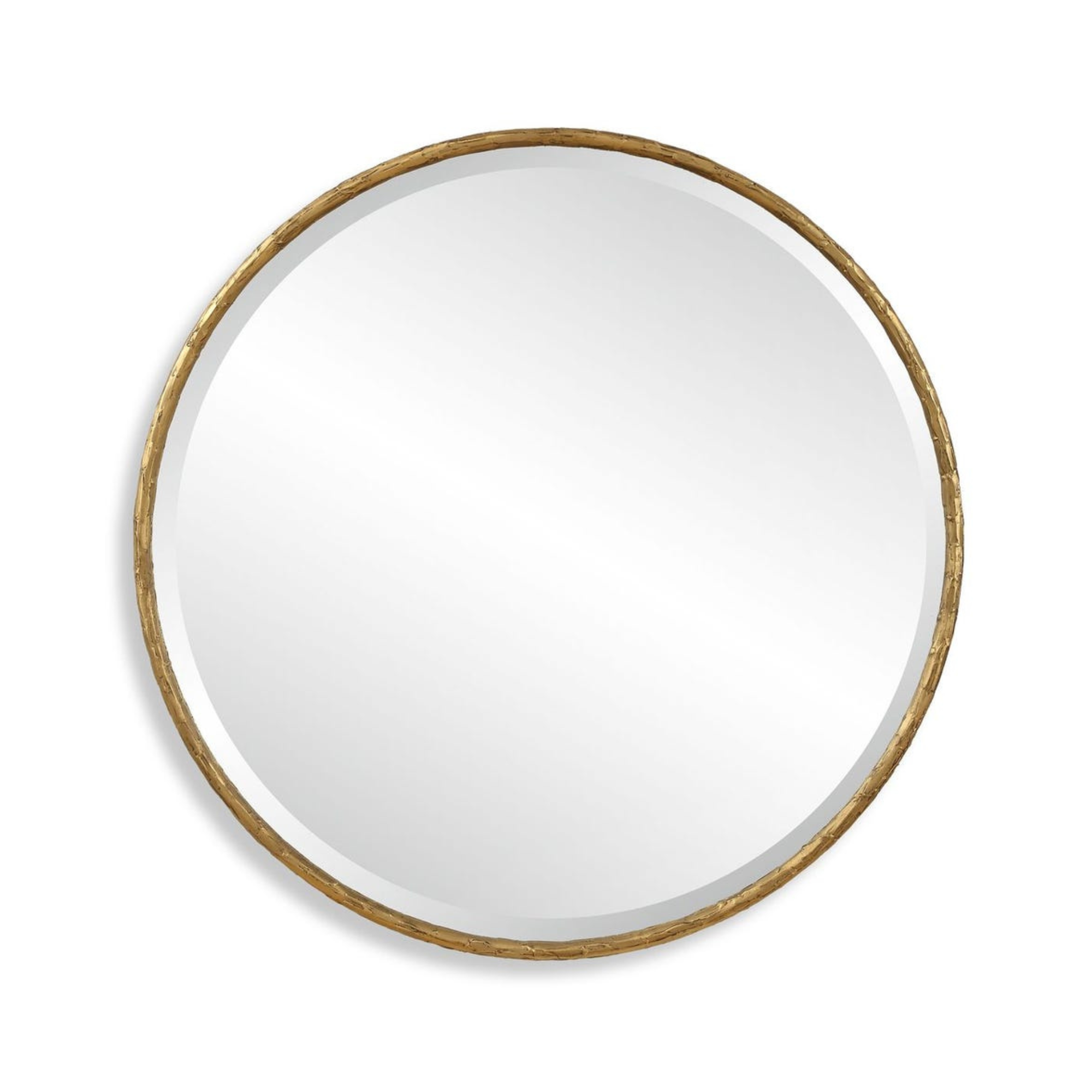 With its aged gold finish and subtle plaster effect, the Sutton Round Mirror is a blend of timeless elegance and rustic charm. Mirror features a 1" bevel.