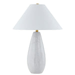 A refined classic, the Vera Table Lamp embodies understated elegance with its clean, minimalist silhouette. Crafted from white glazed ceramic, its subtly speckled finish adds depth and character, creating a beautifully organic texture. A crisp white empire shade enhances its timeless appeal, while gold hardware introduces a hint of elegance.