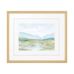 This fine art print features hand-deckled edges and is elegantly float-mounted behind white matting, creating dimensional depth. The piece is presented in a ribbed moulding with a distressed gold finish that complements the artwork while adding sophisticated visual interest to any space.