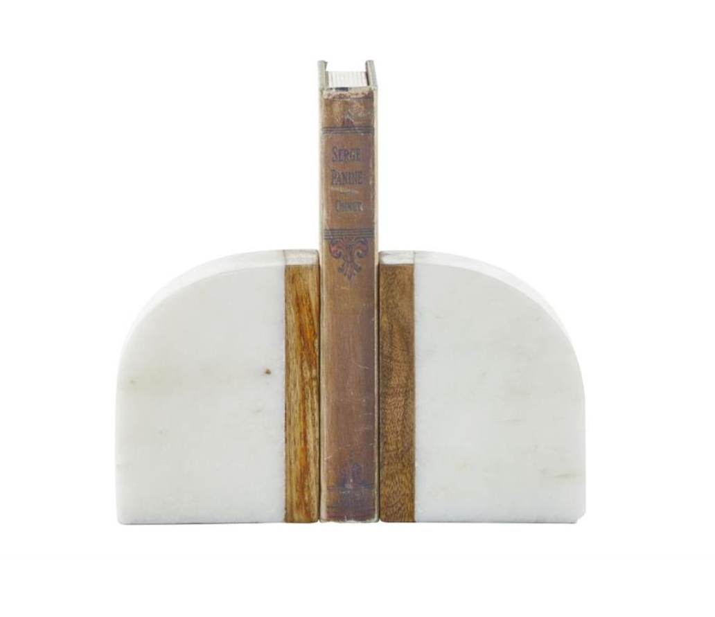 Each white marble bookend measures 3.95L x 1.9W x 5.0H , 3.8L x 1.95W x 5.0H inches, and collectively weighs 5.45 lbs